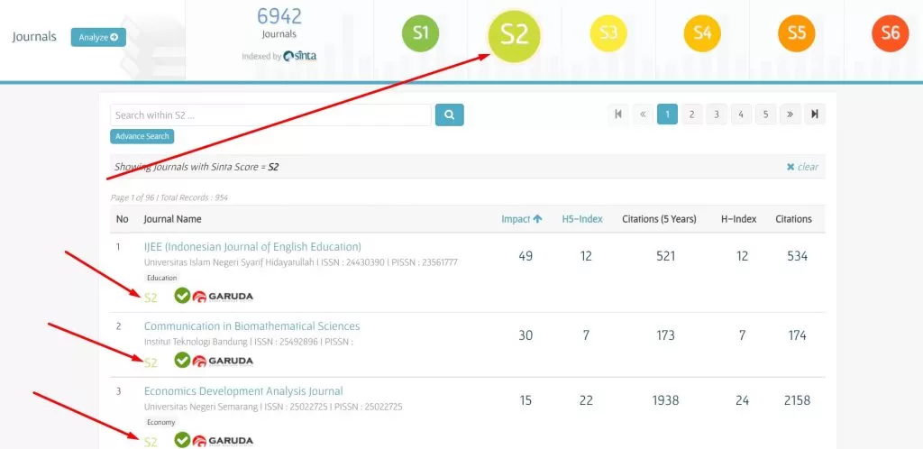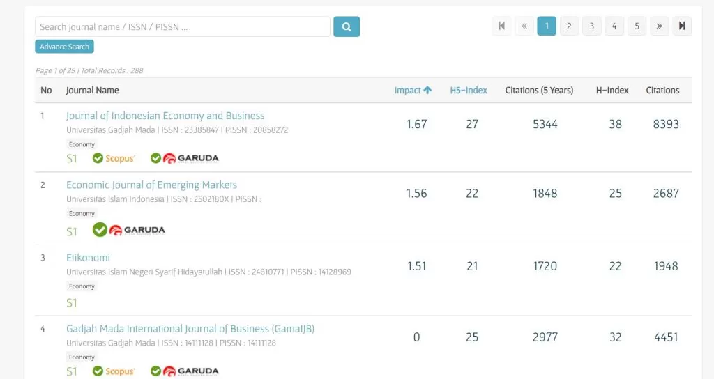 Sebagai contoh, kami akan memilih Jurnal SINTA 2 ekonomi